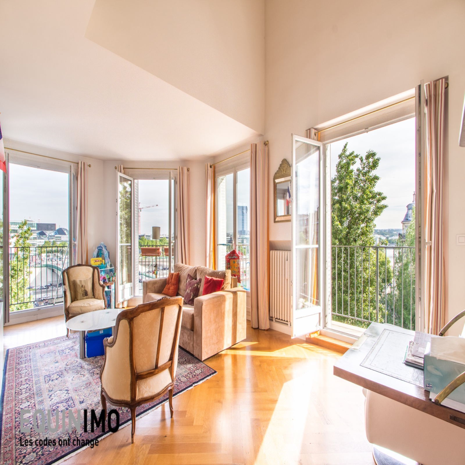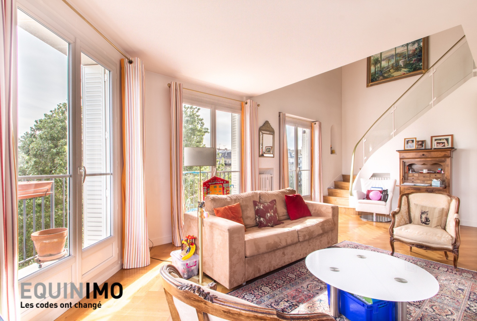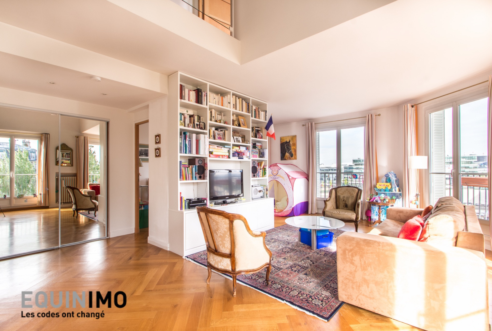 Auteuil sud / Exelmans - Equinimo, vous propose cet appartement sans vis-à-vis de 3 pièces de 94m² en parfait état, lumineux (exposé sud/ouest), situé dans un immeuble pierre de taille de 1950.Ce bien, au 6ème et dernier étage, se compose au 1er niveau : d'une entrée avec rangements, d'un double séjour exposé Sud-Ouest d'environ 40m² donnant sur 3 balcons dont 2 filants avec une vue panoramique sur la Tour Eiffel et la Seine, d'une cuisine indépendante aménagée et équipée ainsi que d'un WC indépendant.A l'étage : 2 chambres de 11m² et 14m² dont une avec dressing, une salle de bains avec WC ainsi qu'un bureau.Cet appartement rénové récemment, bénéficie en outre de 2 verrières, de parquet massif, de fenêtres en double vitrage, ainsi que de nombreux rangements.Une cave est incluse dans cette vente. Le loyer est de 3080€ comprenant les charges. Elles incluent notamment le chauffage, l'eau chaude et l'eau froide, l'ascenseur et l'entretien des parties communes. Le T3 ainsi que la gare RER C Pont de Garigliano, sont à 350m.Disponibilité immédiate. Nos frais d'agence sont de 1410 euros