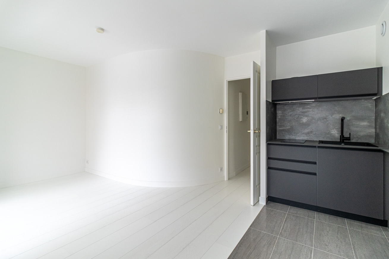 À proximité des commerces et du métro Pont de Levallois, cet appartement, situé Rue Greffulhe, se compose comme suit : une entrée, une pièce de vie lumineuse avec placard donnant sur un balcon de presque 4 m², une cuisine américaine équipée et aménagée, ainsi qu’une salle d’eau avec WC.