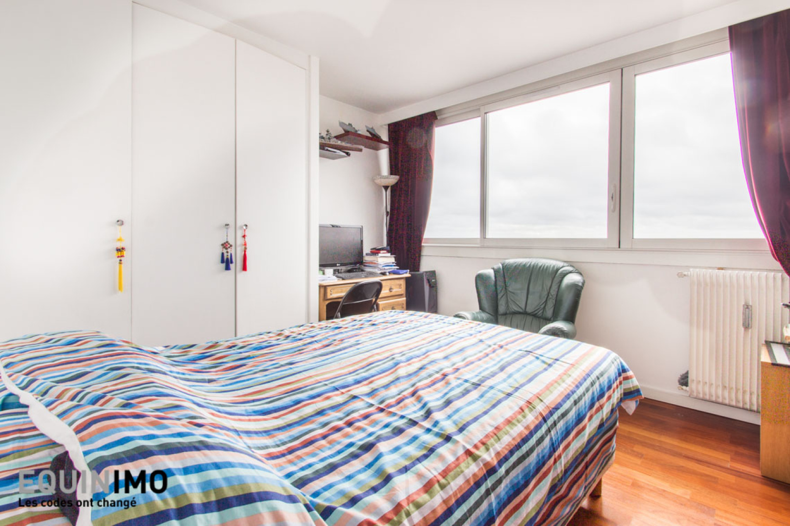 Equinimo, les commissions les plus faibles du marché, vous propose ce bien de 73m² au 21ème étage avec ascenseur, dans la tour Ravenne, situé boulevard Masséna à 39m du métro Porte de Choisy.Le bien, calme et lumineux, se compose d'une entrée donnant sur un séjour orienté est, de deux chambres orientées sud, d'un bureau, d'une cuisine équipée et séparée, d'une salle de bains et d'un WC séparé. L'appartement dispose de parquet, de rangements intégrés et de fenêtres en double vitrage. Une cave est incluse dans la vente. Une place de stationnement en location peut être obtenue en sus.Les charges, de 479 euros par mois, incluent notamment l'eau froide, l'eau chaude, le chauffage, l'ascenseur, les services d'un gardien et l'entretien des parties communes. La taxe foncière est de 850 euros. Il n'y a pas de travaux à l'ordre du jour dans la copropriété selon les vendeurs.Notre commission est incluse dans le prix, elle est fixe et s'élève à 5 900 euros ttc.