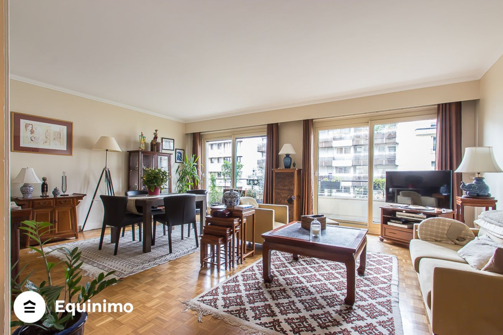 Ranelagh ? Equinimo, 10 ans d?expérience, vous propose à la vente cet appartement de 98m² (98.18m² loi Carrez) avec 2 balcons en bon état, au 5ème étage avec ascenseur, situé boulevard Suchet, dans une copropriété bien entretenue à 400 m du métro Ranelagh.L'appartement traversant et lumineux, se compose d?une entrée avec rangements, d?un double séjour de 32m² donnant sur le balcon de 8m² exposé sud-est, d?une cuisine séparée équipée, d?une première chambre de 14m² , d?une seconde chambre de 13m² donnant sur le second balcon de 5m², d?une salle de bains avec WC, d?une salle d?eau et d?un WC indépendant. Le bien dispose de parquet massif, de fenêtres en double vitrage, et de nombreux rangementsUne cave est comprise dans cette vente.Les charges, de 450 euros par mois, incluent l?eau froide, l?eau chaude, le chauffage, l?ascenseur, les services d?un gardien et l?entretien des parties communes.La taxe foncière est de 1 800 euros.