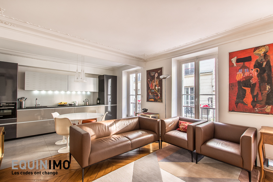Equinimo, vous propose à la vente ce 3 pièces de 80m² (71m² loi Carrez), situé sur l'Ile Saint-Louis dans un bel immeuble ancien de (1800), à 450m du métro ligne 7 Pont-Marie.Le bien, en parfait état, est au 1er étage avec ascenseur. L'appartement, lumineux, dispose d'une triple exposition. Il se compose d'une entrée avec rangements, d'un séjour de 30m² avec une cuisine ouverte aménagée et équipée, de deux chambres au calme de 12m² et 15m², d'une salle de bains (douche & baignoire) ainsi que d'un WC indépendant.Une cave, une chambre de service de 4,68m² et un débarras sont également vendus avec l'appartement.Cet appartement bénéficie de parquet massif, de moulures, de deux cheminées fonctionnelles, de fenêtres en double vitrage ainsi que de nombreux rangements.Les charges de copropriété de 260 euros par mois, incluent notamment l'eau froide, l'ascenseur et l'entretien des parties communes. Le chauffage et l'eau chaude sont individuels et au gaz.Nos honoraires, inclus dans le prix affiché, s?élèvent à 2% du prix de vente et sont à la charge de l?acquéreur soit un prix net vendeur de 1 499 400€.