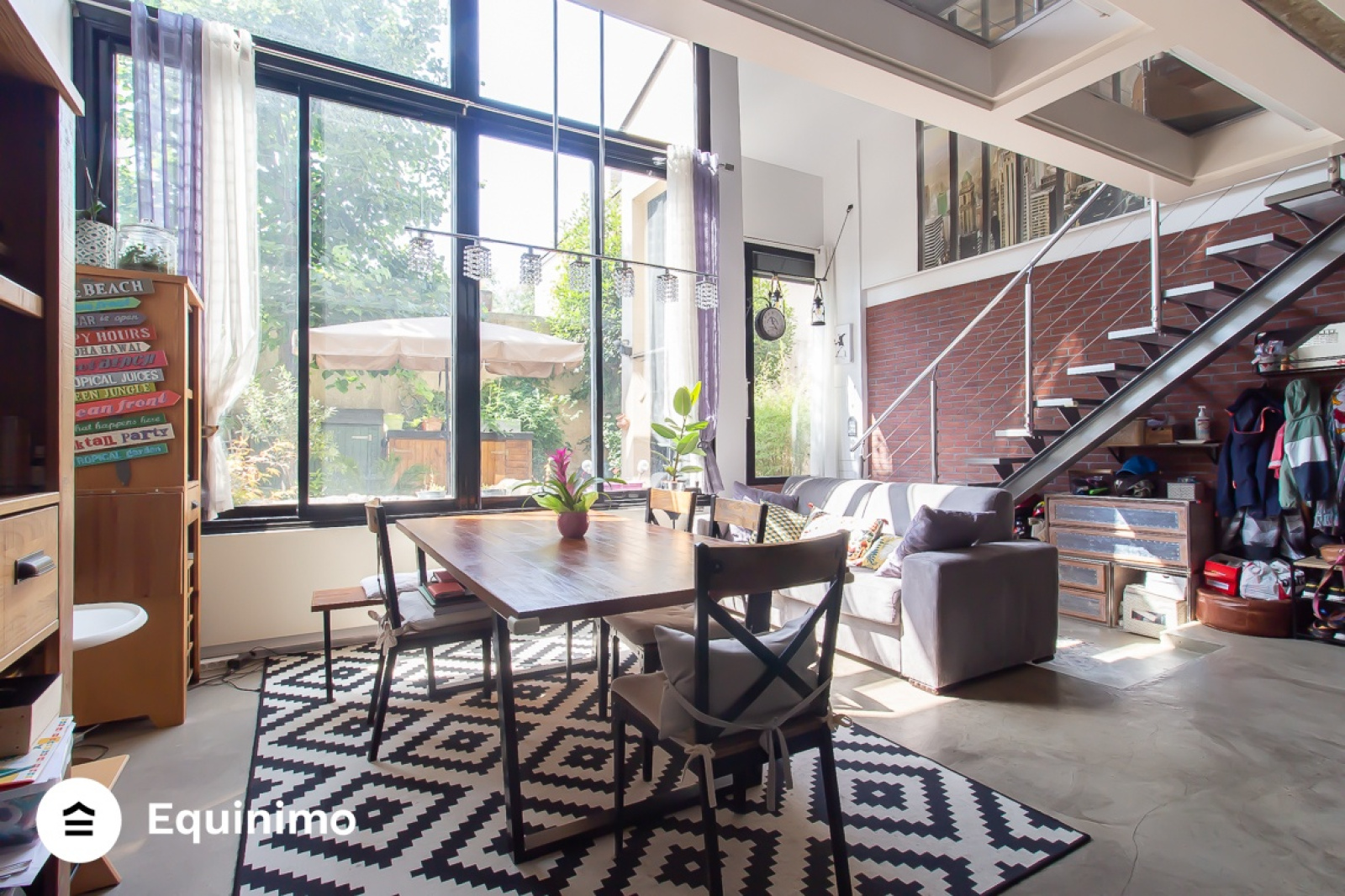 Equinimo, une commission fixe de 7 900€ vous propose à la vente ce loft très lumineux de 128.84m² (surface au sol) et 119.61m² (loi Carrez) avec sa terrasse dans une petite copropriété arborée, situé Chemin Latéral dans une impasse, proche du métro École Vétérinaire de Maisons-Alfort et à proximité de tous les commerces.Au rez-de-jardin, le bien se compose d?une salle à manger avec sa cuisine cuisine américaine équipée, le tout faisant une surface de 40m², donnant sur la terrasse de 25m² exposée plein sud.En mezzanine se compose un salon de 23m² avec sa cheminée à insert.A l'étage, 2 chambres et d'une salle de bains avec WC.Au dernier étage se trouve une suite parentale de 30m2 bénéficiant d'un grand dressing avec sa salle de bains et douche à l'italienne et d'un second WC.Le bien bénéficie également de fenêtres en double vitrage avec stores électriques et de nombreux rangements.Une place de stationnement est incluse dans la vente.Les charges, de 120 euros par mois, incluent notamment l?eau froide et l'entretien des parties communes. Le chauffage et l'eau sont individuelles et au gaz.La taxe foncière est de 1700€.
