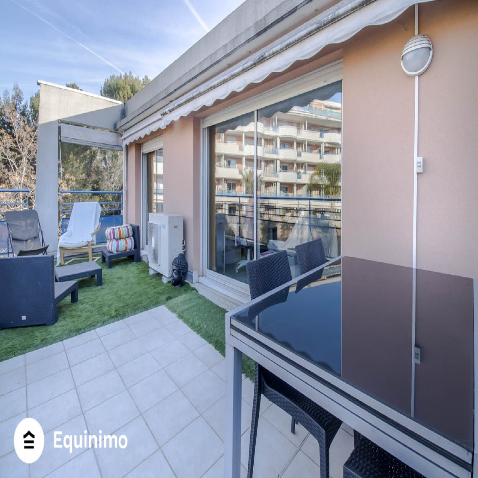 Equinimo, 11 ans d?expérience et une commission fixe de 6 500€, vous propose à la vente cet appartement, lumineux et traversant de 85m², situé avenue Maurice Chevalier dans une résidence sécurisée au calme avec piscine, tennis, golf et jardin. Ce bien en bon état général se situe au 3ème et en dernier étage avec ascenseur. Il se compose d?une entrée avec placard intégré, d?un séjour/cuisine aménagée et équipée de 32m² donnant sur une terrasse de 25m² exposée ouest, de trois chambres de 12m² ,13m² et 15m², dont une suite parentale avec douche à l'italienne, d?une salle de bains ainsi que d?un WC séparé.Le bien bénéficie de la climatisation réversible, de fenêtres en double vitrage et de nombreux rangements.Un Box complète ce bien.Les charges de 230 euros par mois incluent notamment l?ascenseur, le service de gardiennage, l?entretien des parties communes de la piscine, des tennis, du golf et du jardin.La taxe foncière est de 1300 euros.