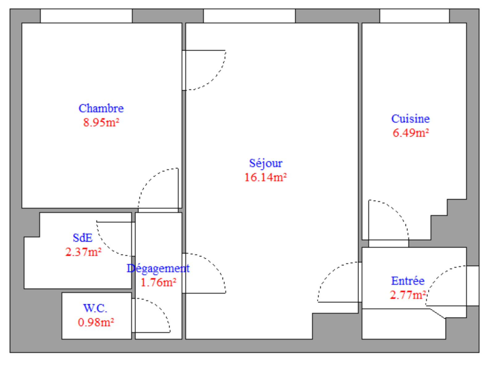L’appartement, calme et lumineux, se compose d’un séjour de 16m², d’une cuisine séparée de 6,50m², d’une chambre de 9m², d’une salle d’eau et d’un WC indépendant.