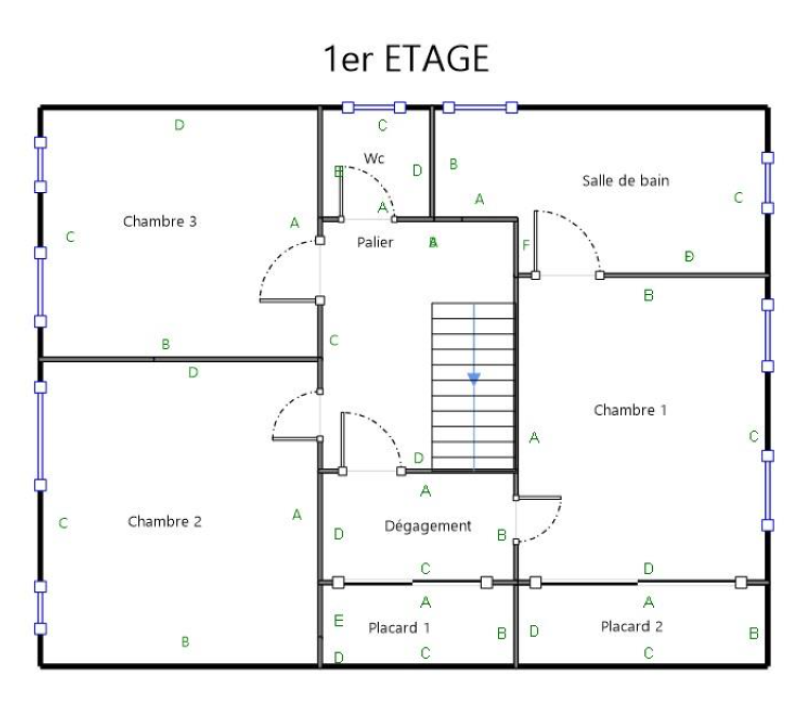 - au 1er étage de trois chambres de 9.50m², 10.50m² et 12.50m² avec dressing, d'une salle de bains et d'un WC indépendant