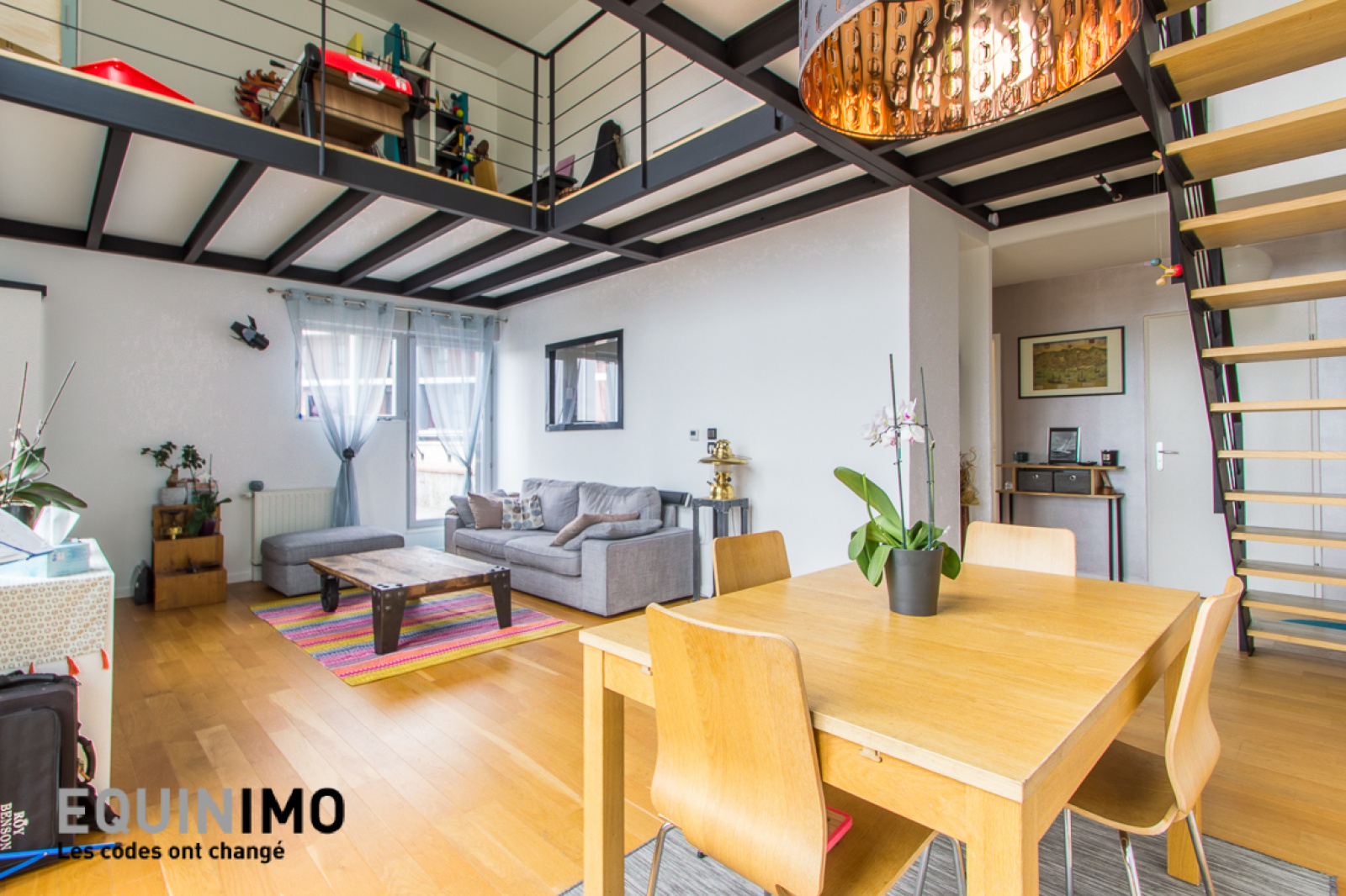 Equinimo vous propose ce duplex de 113m² (111m² loi carrez) aux 3ème et 4ème et dernier étage avec ascenseur, dans un immeuble BBC avec panneaux solaires de 2012, situé avenue des Alliés à 650m de la gare RER B de Palaiseau.L'appartement, sans vis-à-vis et en parfait état, se compose au premier niveau d'un séjour de 27m² orienté sud-est donnant sur une terrasse de 28m² avec une vue dégagée et un mur végétal, d'une cuisine séparée et équipée ouvrable sur le séjour, d'une chambre de 14m² et d'une salle de bains avec WC.Le deuxième niveau se compose de deux chambres de 12m² et 13m², d'une mezzanine et d'une salle d'eau avec WC.Le bien dispose de parquet, de rangements intégrés, d'une porte blindée et de fenêtres en double vitrage. Deux places de stationnement en enfilade sont en ventes en sus au prix de 20 000 euros.Les charges, de 350 euros par mois, incluent notamment l'eau froide, l'eau chaude, le chauffage, l'ascenseur et l'entretien des parties communes. La taxe foncière est exonérée pendant deux ans. Il n'y a pas de travaux à l'ordre du jour dans la copropriété selon les vendeurs.Notre commission est incluse dans le prix, elle est fixe et s'élève à 5 900 euros ttc.