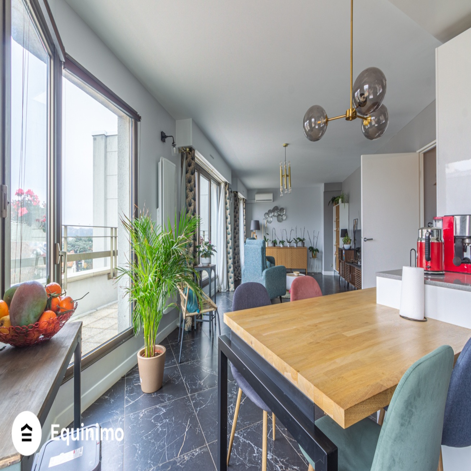 Equinimo, 11 ans d?expérience et une commission fixe de 6 500€, vous propose à la vente ce bien de 85.50m², avec terrasses de 27.50m², au 5ème et dernier étage avec ascenseur, situé avenue du Président Wilson à 850m du RER A Joinville-le-Pont.L?appartement, traversant et en très bon état, se compose d?un double séjour de 33.50m² (possible troisième chambre) avec terrasse orientée ouest, d?une cuisine semi-ouverte, aménagée et équipée de 9m², de deux chambres de 11m² et 12m², d?une salle d'eau et d?un WC indépendant.Le bien bénéficie de parquet, de rangements intégrés et de fenêtres en double vitrage. Une cave est incluse dans la vente. Une place de stationnement en sous-sol est en vente en sus au prix de 20 000 euros.Les charges, de 238 euros par mois, incluent notamment l?eau froide, l?ascenseur, les services d'un gardien et l?entretien des parties communes. L?eau chaude et le chauffage sont individuels électriques. La taxe foncière est de 1 976 euros.
