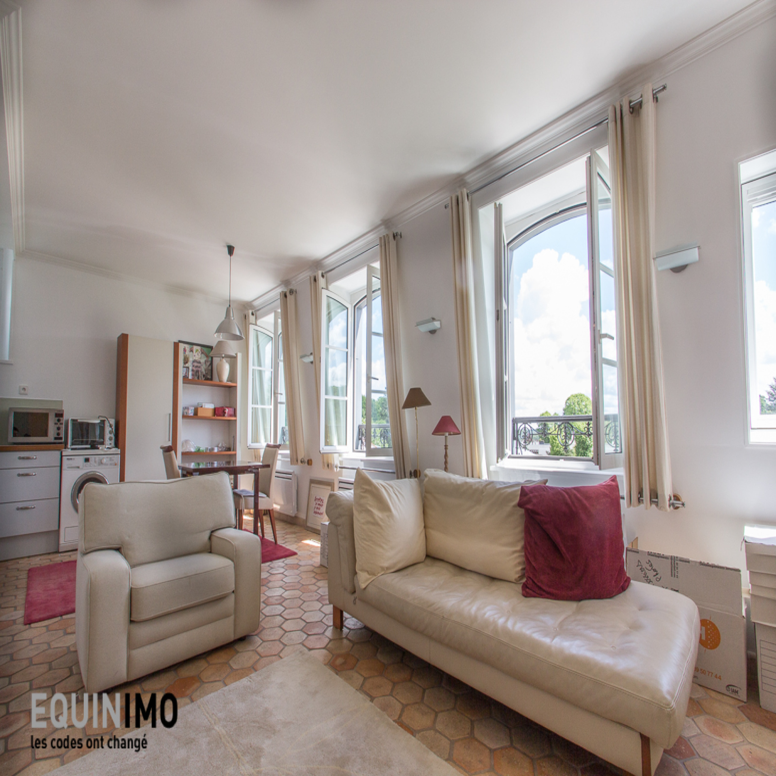 Equinimo, les commissions les plus faibles du marché, vous propose ce 2/3 pièces lumineux de 54m² en parfait état, situé Place de la Mairie dans un bel immeuble de 1900 au coeur du village de Marnes-la-Coquette.Ce bien, au calme et bénéficiant d'un plan en étoile, est au 4ème et dernier étage sans ascenseur. Il se compose d'une entrée avec rangements, d'un séjour lumineux sans vis-à-vis avec sa cuisine américaine équipée, le tout faisant une superficie de 24m², d'une chambre de 11m² avec rangements, d'une salle de bains et d'un WC séparé.L'appartement bénéficie également de tomettes, de fenêtres en double vitrage et de nombreux rangements. Une cave est incluse avec le bien.Les charges de copropriété sont de 100 euros par mois et incluent notamment l'eau froide et l'entretien des parties communes. Le chauffage et l'eau chaude sont individuels et électriques. La taxe foncière est de 350 euros. Notre commission est incluse dans le prix, elle est fixe et s'élève à 5 900 euros ttc.