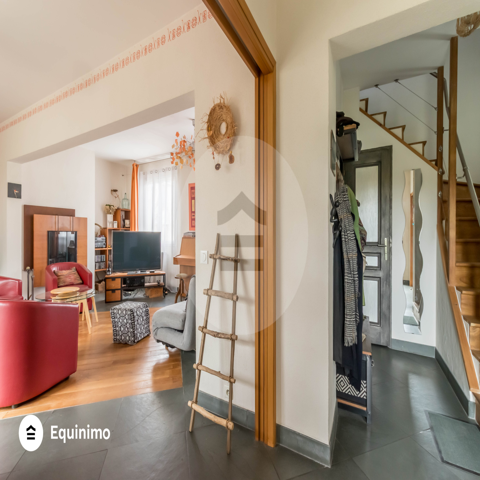 Au rez-de-chaussée : une entrée avec de nombreux rangements intégrés, des WC, un grand séjour lumineux de 41 m² donnant sur une terrasse, une cuisine séparée avec espace dînatoire.