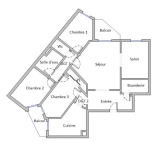 L’appartement, traversant et lumineux, se compose d’un séjour-salle à manger de 33,50m² avec terrasse, d’une cuisine séparée et aménagée de 9,50m², de trois chambres de 9,50m² et 12,50m² avec terrasse et 11,50m², d’une salle d'eau, d'une buanderie (possible salle de bains) et d’un WC indépendant.